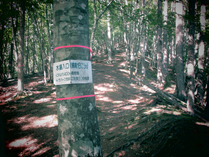 | 8月30日 | 奈良田湖(820)5:00…送水管上5:45…尾根合流点(1344)7:00…水場入口(1603)…窪地(2256)11:25…南峰(2717)14:10/14:30…北峰(2433)14:45 <行動時間:南峰まで9時間10分> |